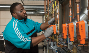 ABS was set up to target entry-level technicians in three markets: 1) Contractors/installers, 2) Property Management firms, 3) Facility Owners. It is a two-semester program with 25 credits spread out over 11 classes. Classes rotate between evening and daytime slots to allow those currently working to complete the diploma on a part-time basis in two years.