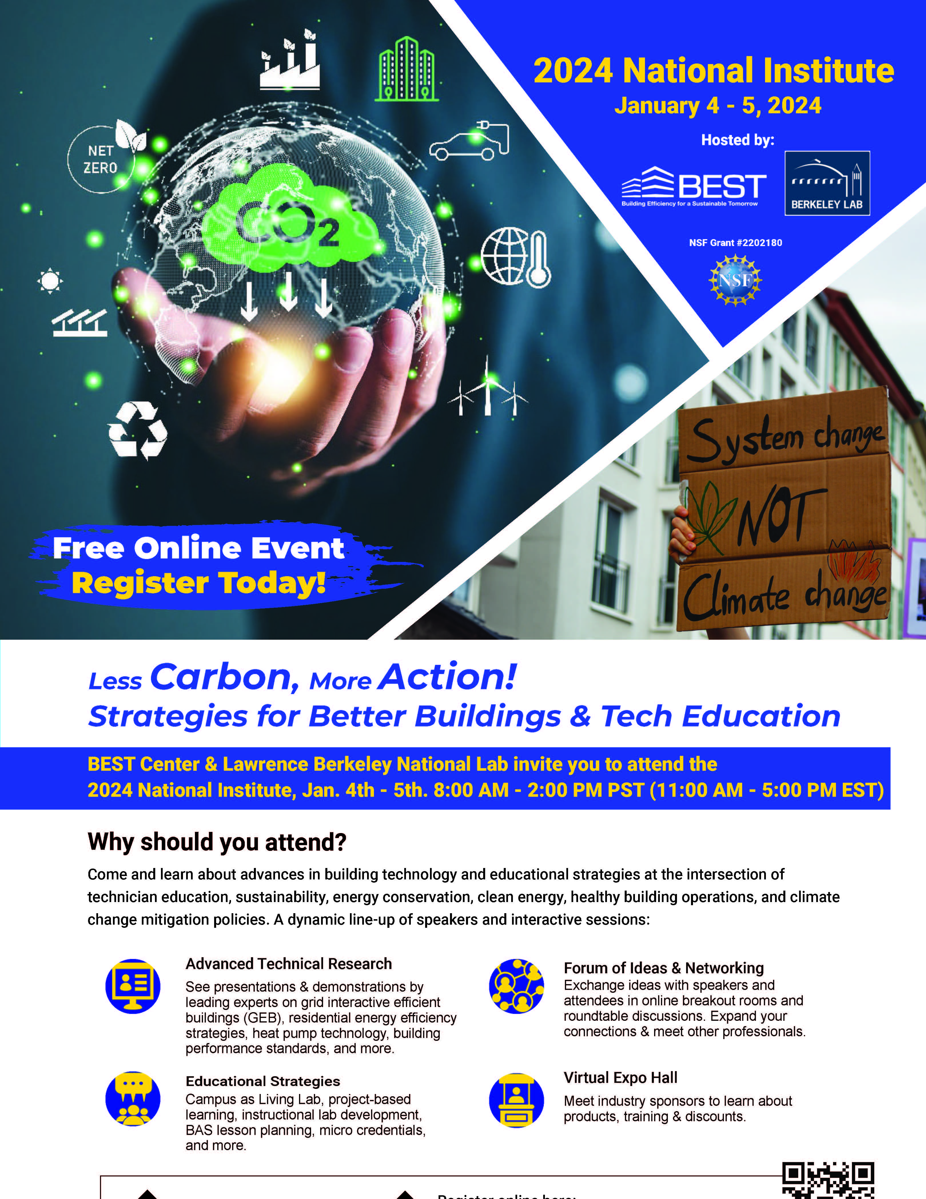 We are thrilled to extend an invitation to you for the upcoming Building Efficiency for a Sustainable Tomorrow (BEST) Center’s 2024 National Institute, in partnership with Lawrence Berkeley National Lab (LBNL). This event offers insights into sustainability, energy conservation, and more.